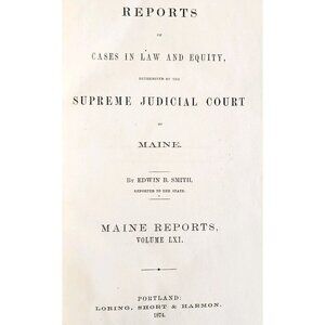 1874 Maine Reports Edwin Smith V1 Cases In Law Victorian 1st Edition 61 SHBS1