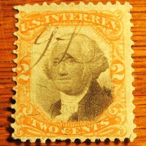 1875 Internal Revenue 2 cent George Washington Postage Stamp heavy cancel