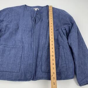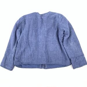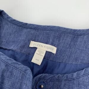 $188 Eileen Fisher Organic Linen Twill Snap Front Jacket Medium Blue Chambray M
