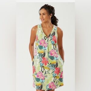 $188 WOMENS TOMMY BAHAMA IF ONE CAN TOUCAN 100% SILK DRESS MEDIUM Novelty Bird