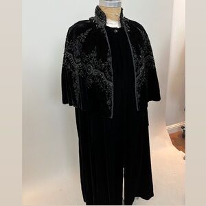 1880's Victorian jet beaded opera capelet with velvet double layer size l/xl