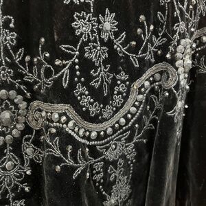a silk velvet capelet, lined with passmenterie embroidery, jet beading, cut glass beads. the capelet is from 1880-1900