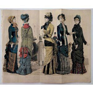 1881 On The Boulevard Hand Colored Engraving Victorian Women's Fashion DWQQ21