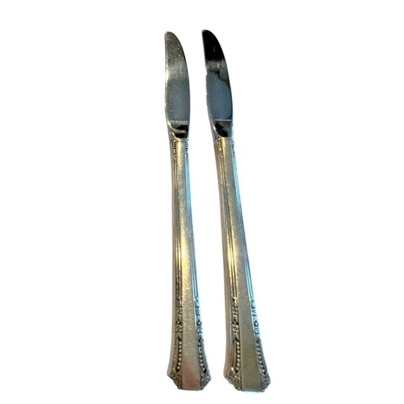 1881 Rogers Del Mar Vintage Stainless Steel Silverplate Oneida Silver Grille Knives 2 Pcs 2409