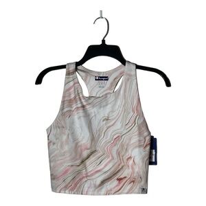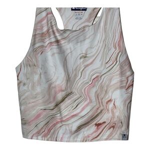 1883. CHAMPION ECO SCULPT PRINT CROP TOP SWIRL PATTERN SIZE MEDIUM PINK/GOLD/WHT