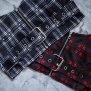 We're here to bring back that classic grunge aesthetic with our Raspberry crop top featuring a variety of plaid prints and oversized buckle and zipper details. We heard you--rest assured as we've got your back! Our best selling fan favorite is back with a few upgrades. Previously known as our Cherry Plaid Crop Top, the Raspberry Plaid Waist Strap Crop Top is our latest improvement on a top you all know and love. The Raspberry crop top is our Refreshed version with upgraded fabric quality, a sturdier belt, and new double elastic strap details. The Raspberry Plaid Waist Strap Crop Top now comes in a variety of colors and prints. You can choose between our classic Cherry Plaid Crop Top color which features a dark red and black plaid print combination or our new monochromatic plaid print in grey. The Raspberry top features two elastic straps on each side of the shoulder. This ensures extra sturdiness and ease of movement from the stretchy material and also adds a unique touch. The top features a simple yet functional zip-up detail found in the middle of the crop top. It also features a waist buckle