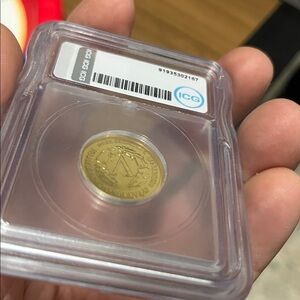 1883 Racketeer Nickel in protective case. Features a gold tone.