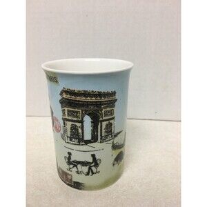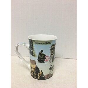 VINTAGE 1887 KENT POTTER UN BONJOUR DE PARIS PORCELAIN MUG IN GREAT CONDITIONNO CRACKS CHIPS OR ANY OTHER DAMAGEMEASURES 4 1/4"H X 3" DIAMETER