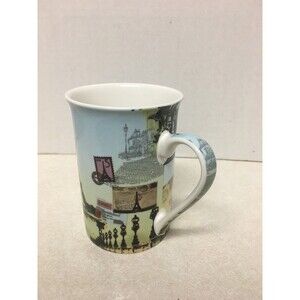 This vintage Kent Pottery mug from 1887 features a multicolor design with the Paris Tower and the phrase "Un Bonjour De Paris" from France. Made of porcelain, this mug is suitable for hot or cold beverages. It is a collectible piece of dinnerware with a classic appeal.