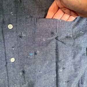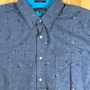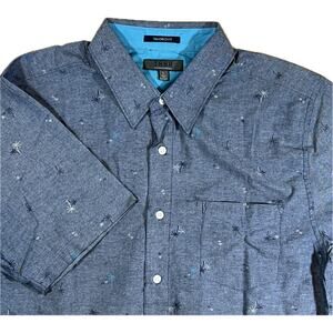 1888 Saddlebred Taylor Fit Blue Palm Tree Embroidery Short Sleeve Shirt Mens L
