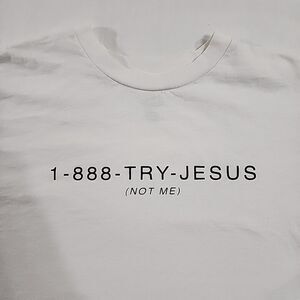 1888 Try Jesus Not Me Funny Dad Joke White Shirt Medium Reborn Kings