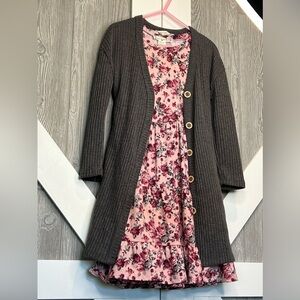 189. NWOT Girls 4-16 Knit Works Tiered Dress & Button-Down Knit Cardigan