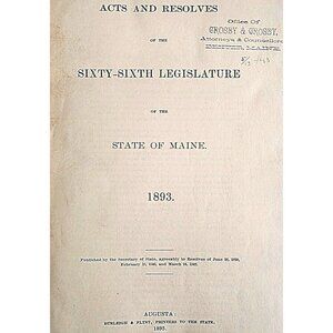 1893 Acts & Resolves State Of Maine 1st Edition 66th Legislature Public Law F5