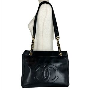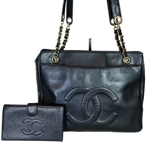 🔥$1899 FREE WALLET BUNDLE🔥CHANEL CC LOGO LAMBSKIN SHOPPER TOTE BAG MEDIUM 2399