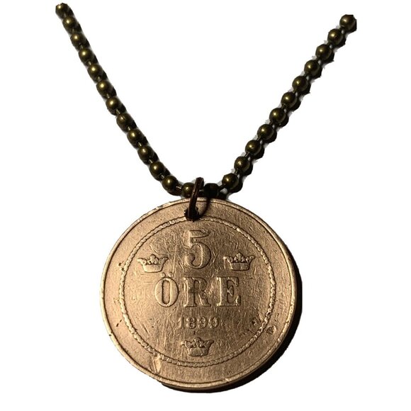 1899 Sweden 5 Öre Norway Coin Pendant Date. Real Antique Coin. Great Gift 🎁