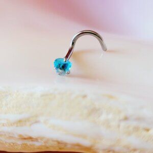 18G Nostril screw piercing jewelry with prong set blue heart CZ.