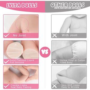 Safe Material and Touch Real Feeling] The head and hand, limbs are made of high quality soft silicone materials. so soft like real skin.it is made of soft safe silica gel,it is so safety and non-toxic and PVE free.