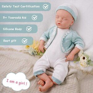 18Inch Realistic Full Body Silicone Reborn ivory White Baby Girl Sleeping Dolls