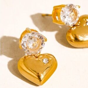 18K Gold Non-Tarnish CZ Heart Dangle Earring