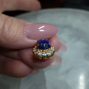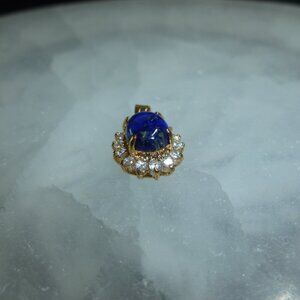 18K Gold Electroplate Lapis Lazuli Swarovski Crystals Pendant