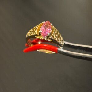18k Gold Electroplated Ring with pink stone ring Sz 8 Preowned and shows wear on the band
