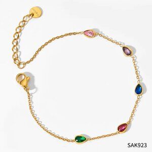 VERY DAINTY 18K GOLD DIPPED FINE BRACELET WITH MULTI-COLORED CUBIC ZIRCONIAS ALONG THE BRACELET. SUBTLE STATEMENT!