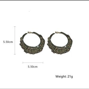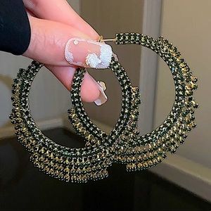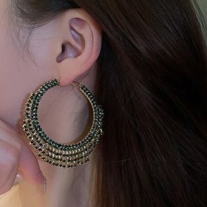 GOLD 18K PLATED EMERALD CRYSTAL TASSEL OVERSIZED HOOP EARRINGS