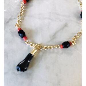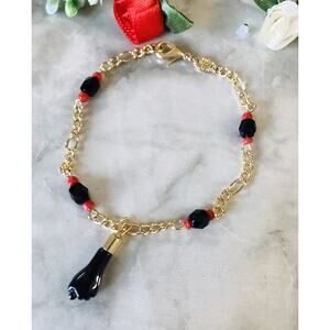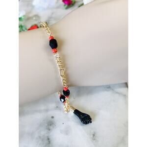 18K GOLD FILLED AZABACHE ORO LAMINADO MARINER BRACELET PROTECTION CHARM 7.4"