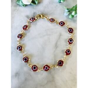 18K GOLD FILLED RED EVIL EYE BRACELET 7.5" PULSERA DE OJO DE LA BUENA SUERTE