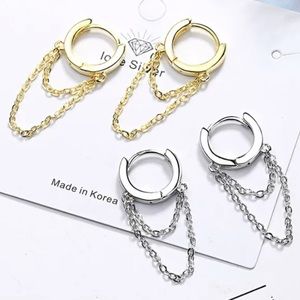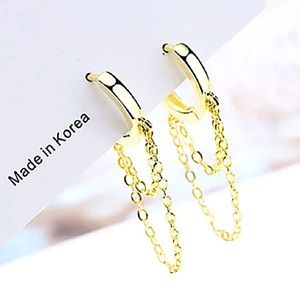 18K gold plated sterling silver chain drop hoop minimalist earrings