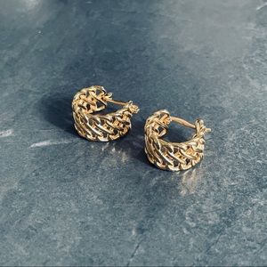 Gift for yourself or a loved one. Beautiful luxe mini hoop earrings. Elegant loop braided detail. Comes with pouch✨