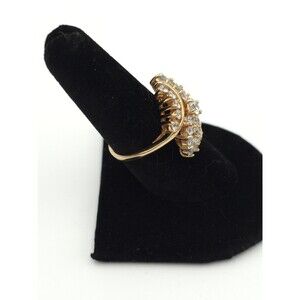 18K GP Gold Plated Ring 27 Clear Crystal Prong Set Rhinestones Size 8