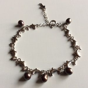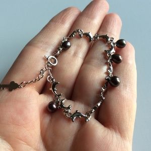 18K GP Marked White Gold Plated Dolphin Charm Bracelet