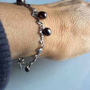 Linked Dolphins And Dark Brown Bead Charms