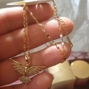 18K Gold Bird Pendant Necklace Phoenix Eagle Choker