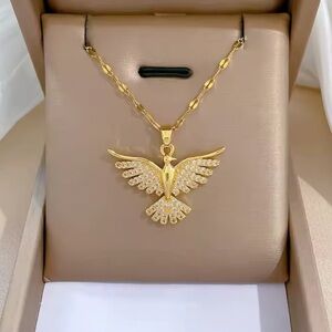 ✨ Stunning phoenix eagle pendant necklace crafted from durable 316L stainless steel 18K Gold plated