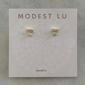 18K Gold Crystal Bar Dangle Huggie Earrings Brand New