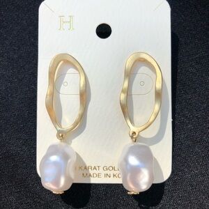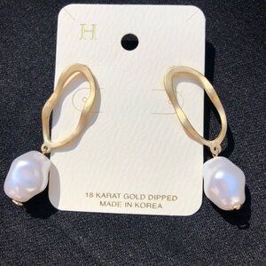 Beautiful matte gold earrings with pearl-like beads at the bottom.