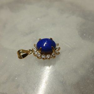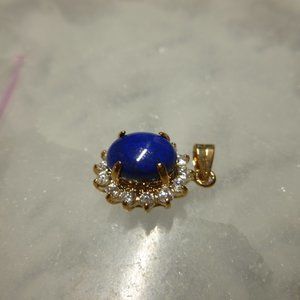 18K Gold Electroplate Lapis Lazuli Swarovski Crystals Pendant
