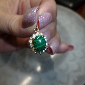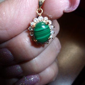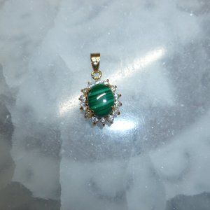 18K Gold Electroplate Malachite Swarovski Crystals Pendant