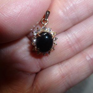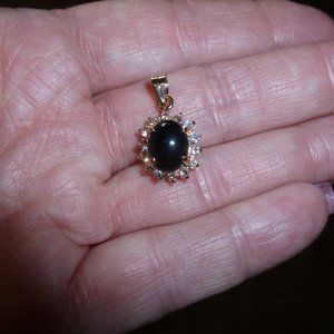 18K Gold Electroplate Onyx Swarovski Crystals Pendant