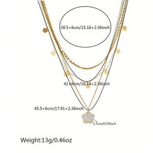 18K Gold Filled Layered Clover Mother of Pearl Necklace Set