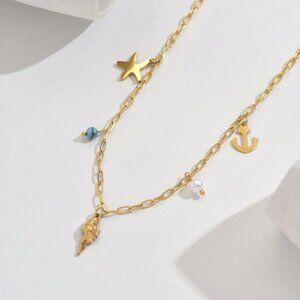 18K Gold Filled Nautical Charm Necklace – Starfish, Shell & Anchor