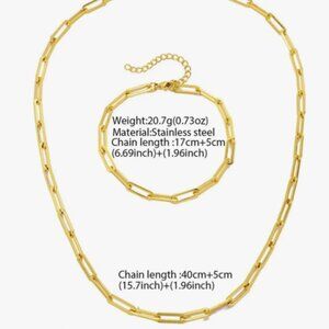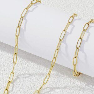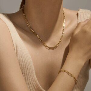 18K Gold Filled Paperclip Chain Necklace & Bracelet Set
