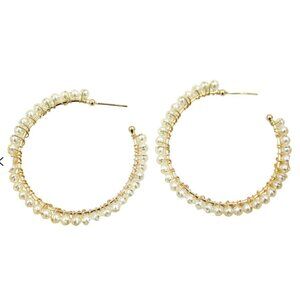 Tags: pearl hoop earrings, gold pearl earrings, beaded hoop earrings, statement earrings, classic hoops, elegant jewelry, lightweight hoops, fashion earrings, chic accessories, timeless jewelry, bridal earrings, wedding guest jewelry, everyday hoops, trendy pearl hoops, 18k gold filled