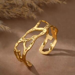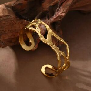 This 18K Gold Plated Geometric Cutout Statement Cuff is designed to turn heads while maintaining an air of understated elegance. Featuring a hollowed, openwork design, the cuff plays with negative space to create a striking silhouette — whether worn solo or stacked with delicate layers.
