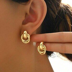 Classic knot design in 18K gold over sterling silver. Tarnish-free, durable, and perfect for everyday wear