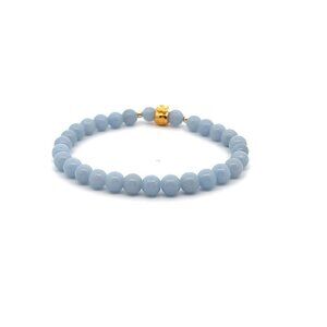 18K Gold Money Bag Lucky Charm Beads Bracelet Gemstones Natural Angelite 6mm