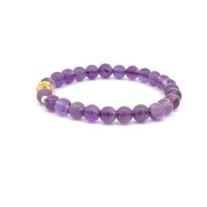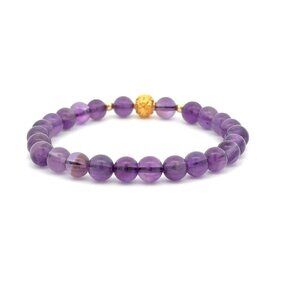 18K Gold Money Ball Lucky Charm Beads Bracelet Gemstones Amethyst 6mm