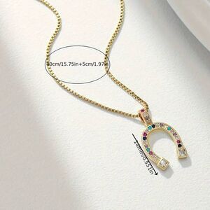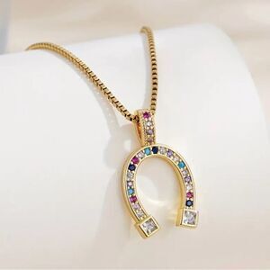 18K Gold Multicolored Cubic Zirconia Horseshoe Pendant Necklace NWT